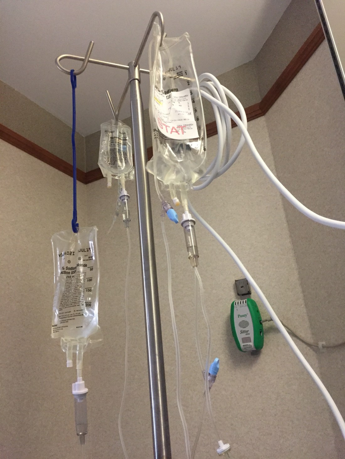 The Doctor stops by and we chat, rash is almost gone now, I am feeling really good, and I wanted to ask about setting a date for check out. I knew we were pushing it for Monday, since that is only day 19, and the standard is 21, but I know I am ahead of the “standard”. She said I needed to get some potassium drips, because it dipped lower than normal. Fine, give it to me and let me take a nice nap while I am here. So they hook me up and expect this to take about 3 hours. She told me she would start to work on scheduling the check out appointments for early next week.
